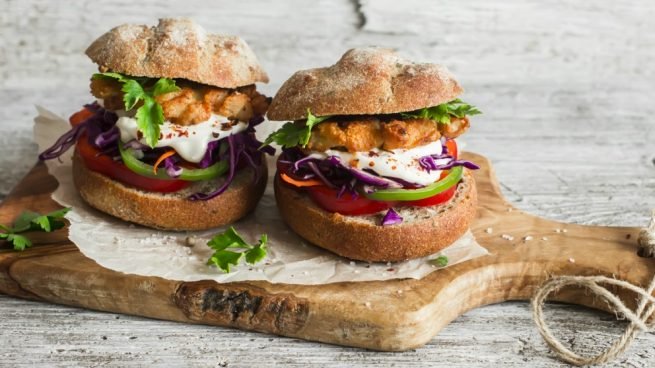 Cuando vayamos a preparar la comida dividimos la masa en tantas hamburguesas como queramos y las doramos por los dos lados en un poco de aceite, en una sartén. Podemos acompañar nuestras hamburguesas con verduras a la plancha o con ensalada de lechuga con tomate, con o sin pan de hamburguesa.
