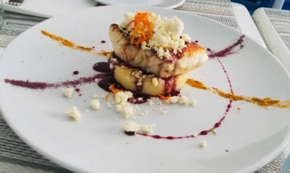 CHERNE, PURÉ DE AZAFRÁN CANARIO Y VINO TINTO